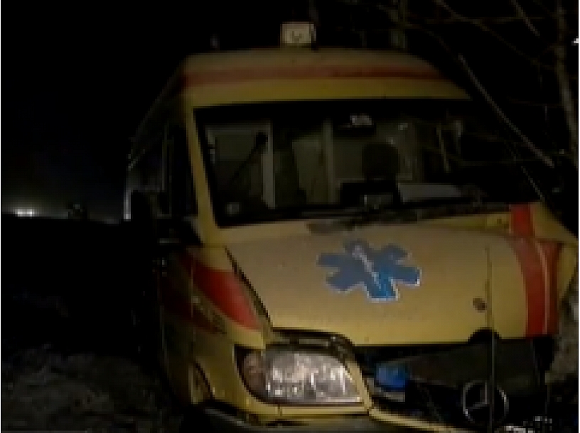 Slidenā ceļa dēļ avarējusi arī uz notikuma vietu izsauktā Neatliekamās medicīniskās palīdzības dienesta brigāde - auto ietriecies kokā.